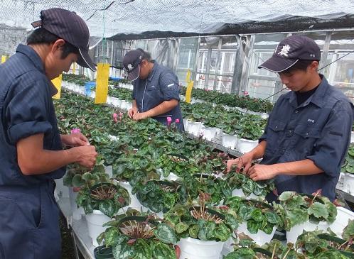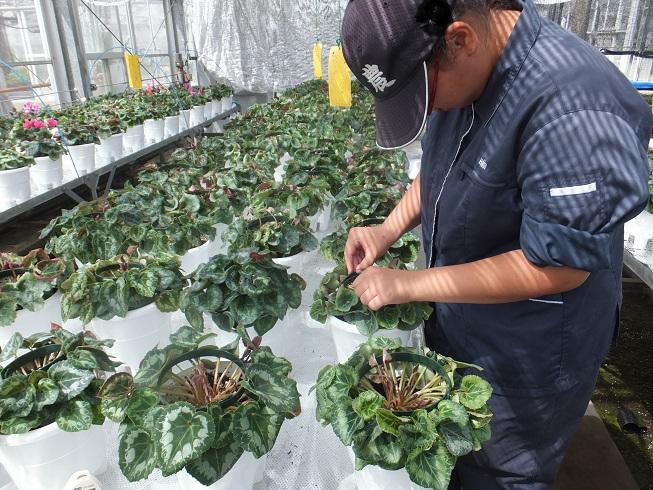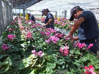 園芸科学科の草花では約1年をかけてシクラメンを栽培していますが、