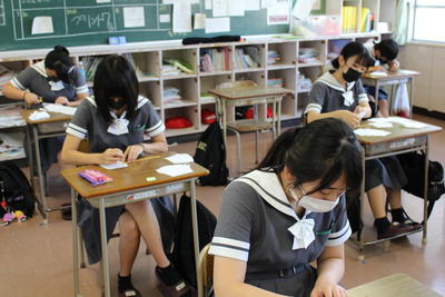 生徒たちは考えさせられる内容だったのか、講演後のアンケートや感想も一生懸命に記入していました。