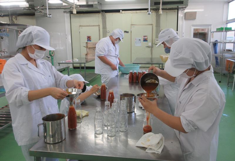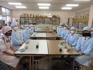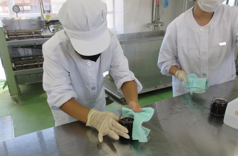 9月28日に園芸科学科の果樹専攻生が栽培したシャインマスカットと巨峰を使い、3年食品科学科の食品製造コースの生徒がぶどうソースを製造しました。