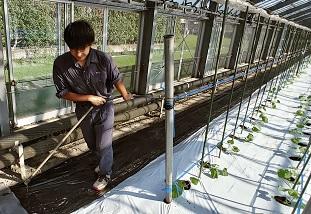 今回、授業を受けた3年農業工学科の生徒は、「ビニールで覆われて暑かったけど、久しぶりに実習が