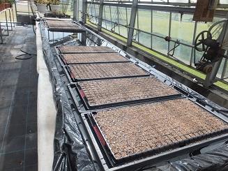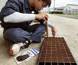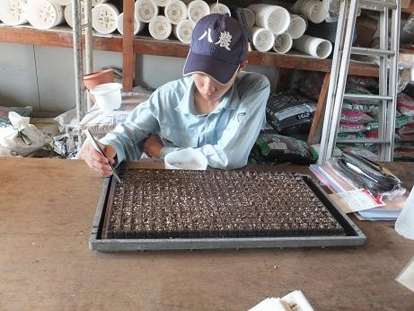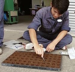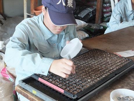 冬・来春の花壇用花の種をまきました。時期的に少し遅くなってしまいましたが、ようやく種まきができました。八代農業高校には、種まき用の機械もありますが、種の形状によって機械ではできないものがあるので、種まき用のトレーにピンセットで一つ一つ丁寧にまきます。11月からの販売を計画しています。