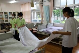 【福祉家庭科2年】介護初任者研修 ベッドメイキング演習