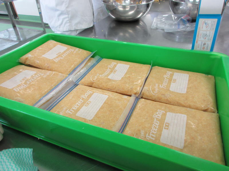 今回は、小松菜を収穫したのでその小松菜を使って、生活デザインの授業で餃子を作ってみました。