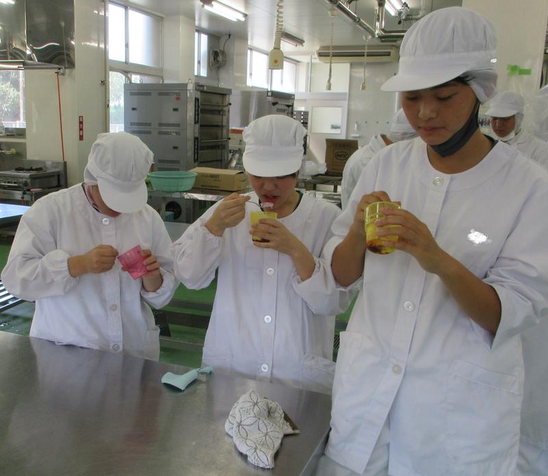 ヨーグルトやアイスクリームにソースとして利用していただくため、ジャムよりかなり流動性を持たせ、さらっとした感じに仕上げました。生徒たちがヨーグルトにかけて試食したところ、めっちゃうまいと言っていました。
