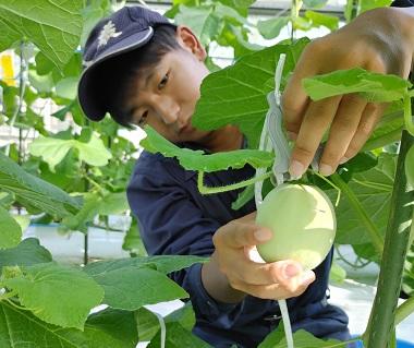 【園芸科学科】~野菜専攻~ メロンの玉拭き