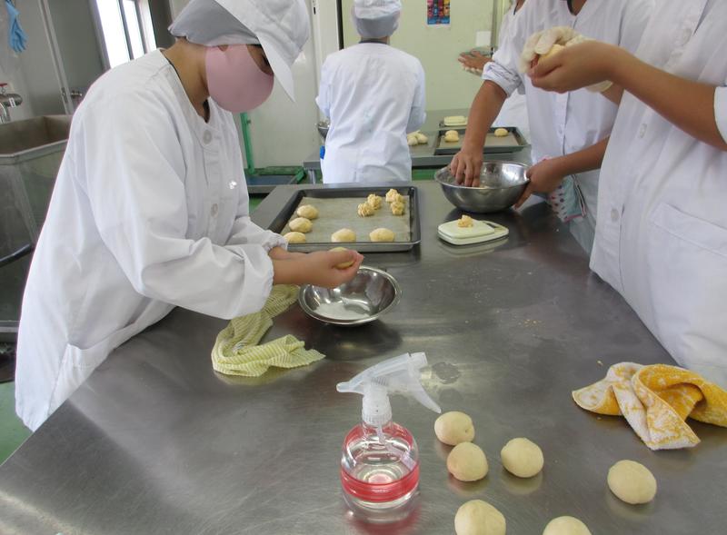 1年園芸科学科の生徒たちが、9月23日の3・4時間目の時間でロールパン・マルパン作りを行ないました。