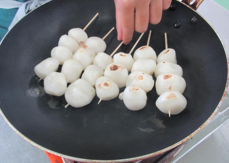 串に刺して焼き目を入れ、タレをかけて完成しました。