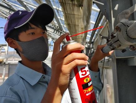 また、温室の設備のメンテナンスを潤滑油を使って行いました。