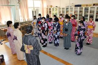 毎年、八農祭のコスチュームショーにむけて八代市の着付けの先生をお迎えして着付けの勉強をしています。