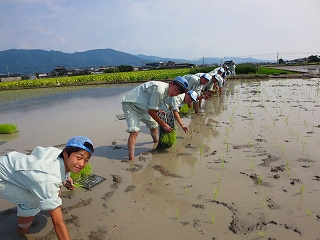 快晴の中、暑い田植えとなりましたが、一生懸命頑張りました。