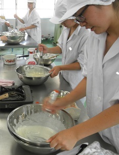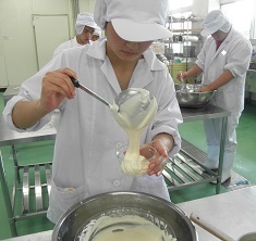 6月22日(金)梅雨の合間の暑い日に2年食品科学科の生徒たちが、ちょっとでも涼しくなるようにアイスクリームを製造しました。