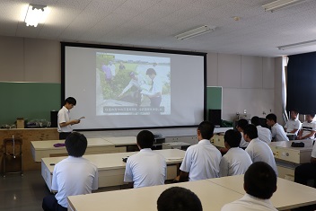 に来られています。昨日は、1,2年生に高校時代の思い出や大学生活、八農生へ期待することなどを講話して頂きました。今日は研究授業が行われます!よろしくお願いします