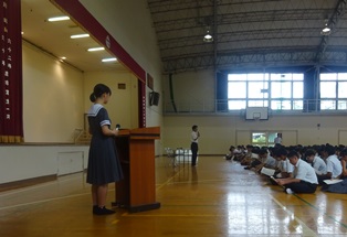 本日、全校生徒が体育館に集まって 生徒総会が行われました。