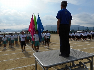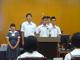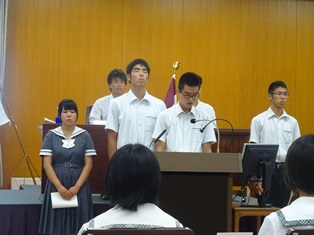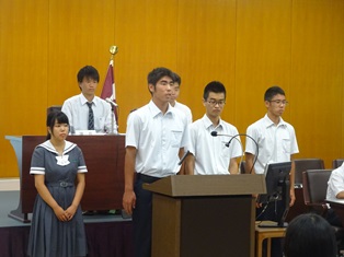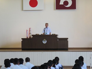 その後、始業式があり、丁校長先生が、「2学期はたくさんの行事があります。成功させるためには、主役だけではなく、裏方に回る生徒がいてこそ成功する。」と話されました。いよいよ始まった2学期に、生徒たちも気合いを入れていました。