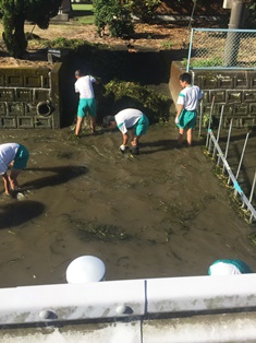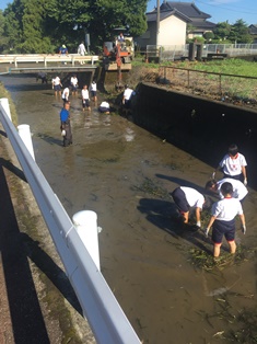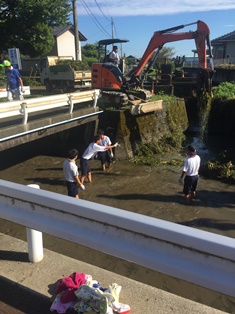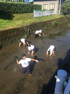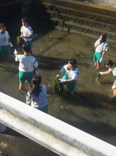 川の中に入り、一生懸命藻を川から運び出す作業は重労働でしたが