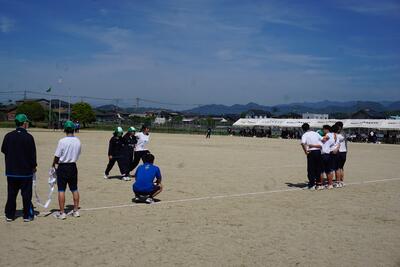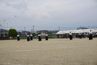 まずグラウンドに集合後、体育大会本番に向けて、係打合せや椅子の準備等、最後の準備を行いました。