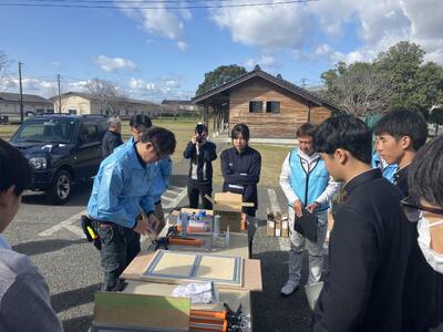 木製プランター作成とドローンの操作体験を農業工学科3年生が先生となり教えました