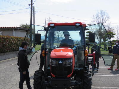 これは、JAグループ熊本様より、農業の担い手育成と地域農業の発展を目的として、自動操舵機能付トラクタ(KUBOTA SL54)一式を贈呈して頂き、今回本校へ納車いただくこととなりました。