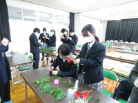 卒業式に卒業生がつけるコサージュを1.2年生の