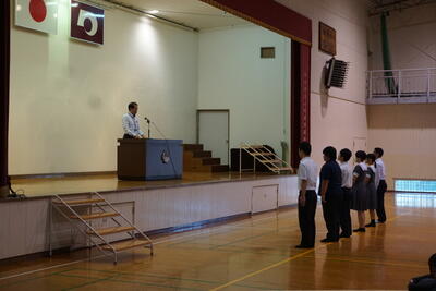 放課後、体育館で正勤礼タイムという全校集会が行われました。