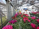 園芸科学科草花専攻生が八農祭に向けてシクラメンの管理をしています。