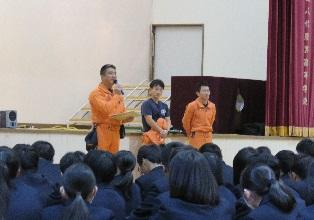 避難訓練後は体育館で地震と津波防災対策のDVDを見て、鏡消防署の方より講評・講話をいただきました。
