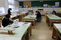 被服製作で余った布を使い、無地の布には刺しゅうをしたり、カラフルなマスクに仕あげたり、ゴムをタイツやバイアスから作るなどそれぞれに工夫されたマスクが完成しました。これまでの学習の成果が活かされていますネ。