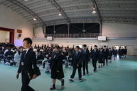 その後、校歌斉唱、記念写真撮影、生徒に見守られながら退場されました。