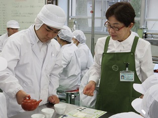 生徒たちは、うまく膨らむシホンケーキの作り方や美味しいお茶の入れ方を実演を交えて教えていただきました。