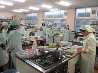 3月5日(月)講師招聘事業の一環で、プロフェッショナルに学ぶということで、今年は食の名人の河野京子さんとお茶の名人の野村美晴さんを講師に招いて、2年食品科学科の生徒たちに授業をおこなっていただきました。