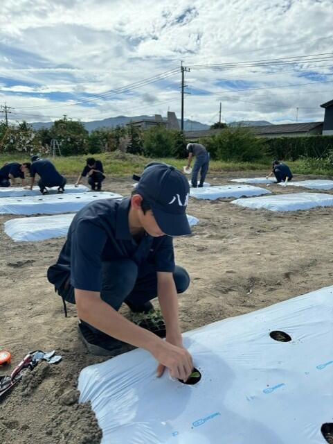 1年生産土木科の生徒たちがダイコンの播種(種まき)をおこないなした。