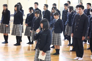 各学科から10人の代表が全校生徒の前で、自分の将来の夢や