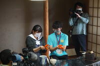 その後、アップルパイの製造とお茶のおもてなし体験のため、2手に分かれて会場に移動しました。