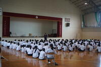 本日、放課後体育館で全校集会が行われました。