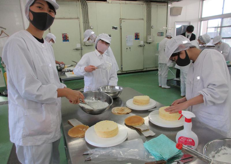 12月3日に八代農業高校の製造室で2年食品科学科の生徒たちが、平岡調理・製菓専門学校の講師の先生を招いて、ナッペ講習会を開催しました。新型コロナウイルス感染拡大防止のため、ソーシャルディスタンスを保ちながらの講習会でした。