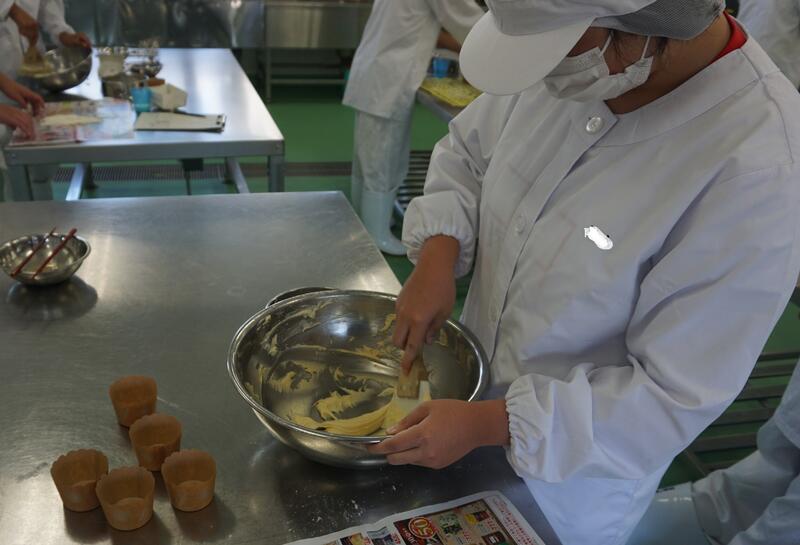 1年食品科学科の生徒たちが、マフィン製造に挑戦しました。