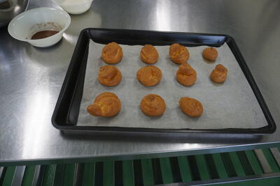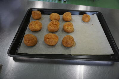 1年食農創造科の食品製造の授業でシュークリームの製造実習を行いました。