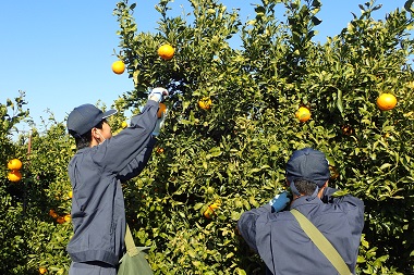 当番実習の生徒たちがミカンの収穫をしていました。