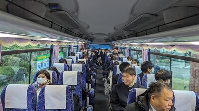 バス内の生徒はニコニコです