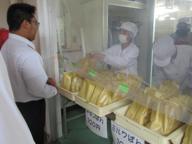 生徒や先生たちが焼きあがったばかりのあったかいチョコぱんとミルクぱんを美味しそうに食べていました。