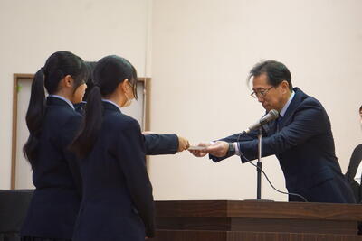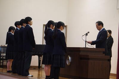 始業式後、新三部会(生徒会・農業クラブ・家庭クラブ)の任命式が行われました。