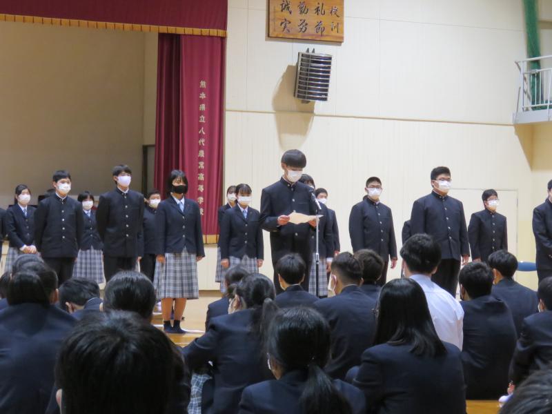 最後に新入生を代表し、農業工学科 東 君が挨拶を行ないました。