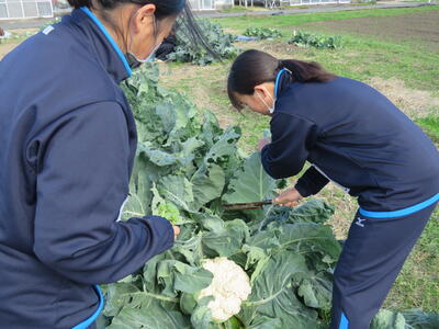 12月18日、1年食農創造科の1人1畑1研究ではブロッコリーとカリフラワーを収穫しました