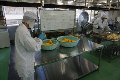 2年食農創造科食品製造の授業で、本校の甘夏を使ったマーマレード作りが始まりました。