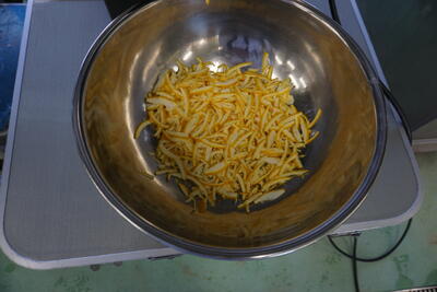 今回は、マーマレードの下処理として皮と果実を分ける実習を行いました。