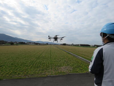 1月12日、本校の水田で、ドローン講習会が行われました