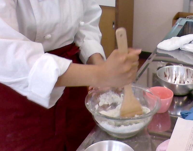 調理室へ移動し、よもぎを洗浄、重曹を入れたお湯で消毒します。すり鉢で細かくし、よもぎの準備完了です!