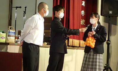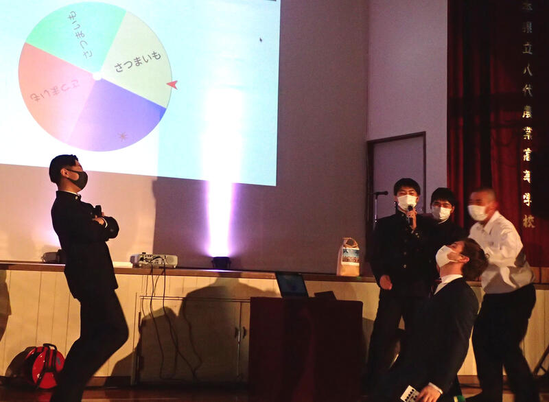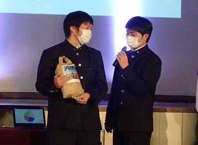 ビンゴ大会の商品は八農で作った農作物と実習製品です。