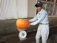 アトランティック…でかいです。写真で一番左に写っているカボチャの重さを測定しました。