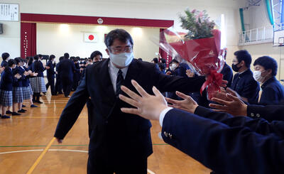 各生徒が思い思いの方法で、先生方をお見送りしました